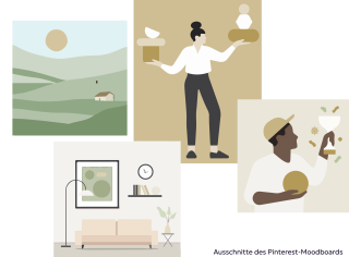 Mit Rücksichtnahme auf technische Notwendigkeiten der Animation habe ich anschließend ein Moodboard erstellt. Der flächige und vereinfachte Stil lässt sich leicht animieren und ist auch mit den visuellen Anforderungen vereinbar.
